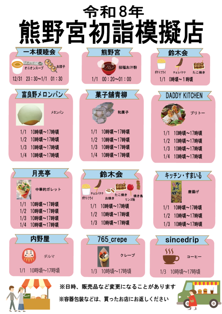 ※ 日時、販売品などは変更になることがあります。